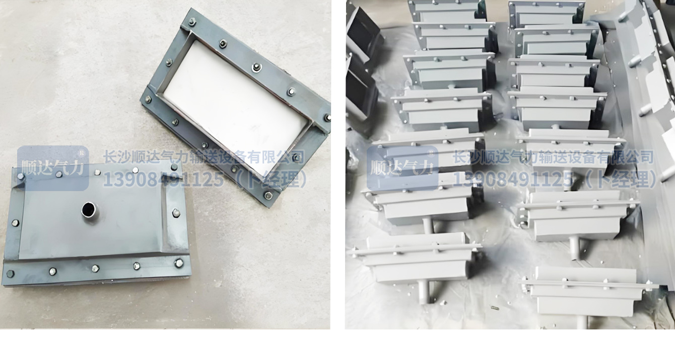 一、气化板为气力输送系统中贮仓料斗的辅助件,通常安装在物料贮存库底部、灰斗侧部位等。卸料时,接通经过加热后的罗茨风机风或压缩空气使粉粒状物料流态化,增加物料的流动性能,使卸料通畅。本装置由碳化硅颗料烧结成形的气化板和箱壳、连接法兰组成。气化板具有良好的透气性和耐磨性,槽体表面采用防锈处理,抗氧化不易生锈,气化板与箱壳采用耐高温封胶组装。