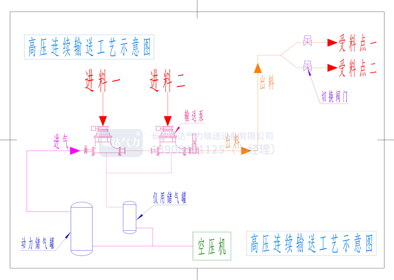 A系列高压连续输送泵,可采用单台布置运行、多台串联布置运行、多台并联布置运行,输送系统的动力气源一般采用空压机,如果业主方有满足的空压机气源,就能在工程造价上更能体现其投资省、而且运行成本低,自动化程度高,不需要人工值守。